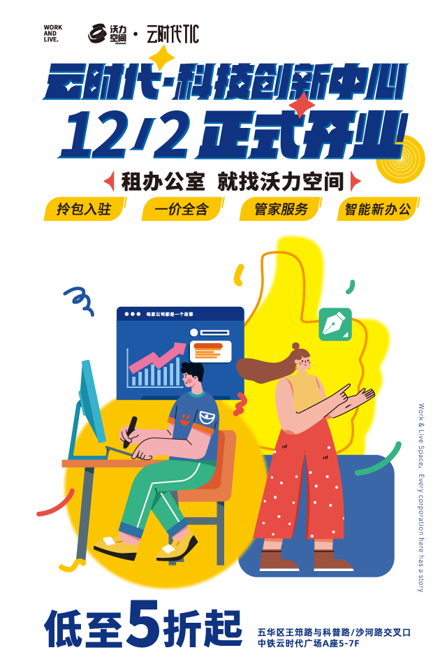 云时代科技创新中心将于12月2日正式开业,项目提供77-200㎡拎包入驻办公室,可享受共享会议室、共享前台、共享茶室、共享直播间等全套共享办公配套设施。