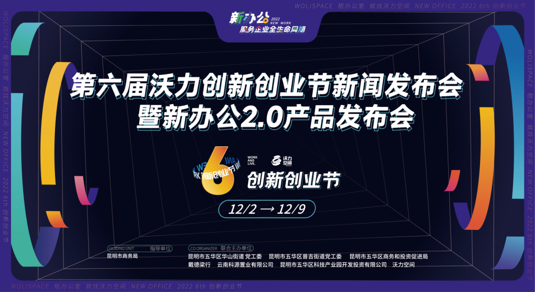 第六届创新创业节以“新办公·服务企业全生命周期”为主题,由昆明市商务局指导,昆明市五华区华山街道党工委、昆明市五华区普吉街道党工委、昆明市五华区商务和投资促进局、戴德梁行、云南科源置业有限公司、昆明市五华区科技产业园开发投资有限公司和沃力空间联合主办,属于创新创业者的大型节日及新办公行业盛会,是从2017年举办第一届后,每年一届的延续。